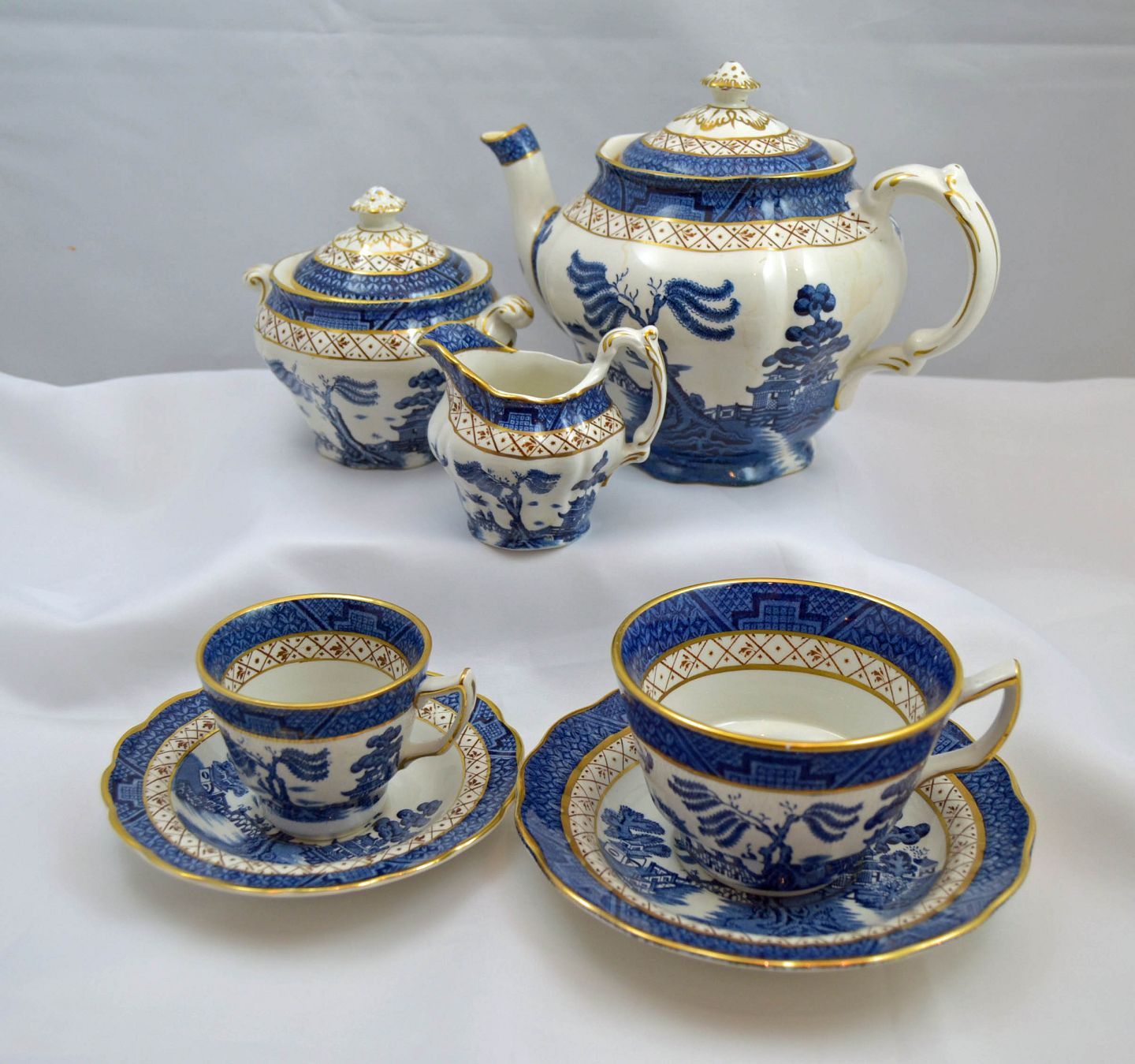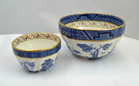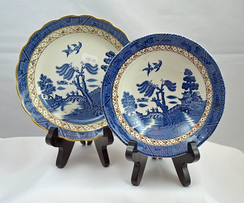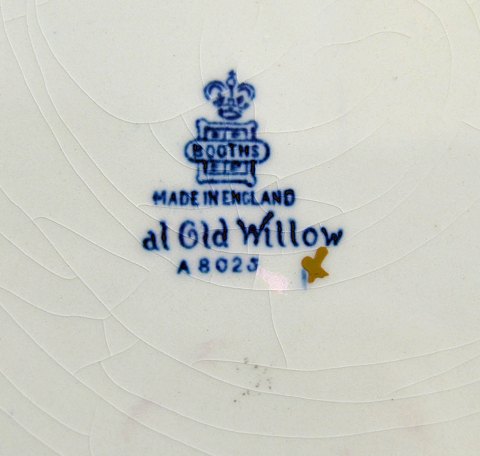 Engelsk fajance stel "Real Old Willow" fra Booths. Stellet kaldes også "To Sjæle" og er det ældst produceret motiv. Motivet bygger på et kinesisk sagn om en rigmandsdatter, som forelsker sig i en af sin faders lakajer. Kærligheden er gengældt, men da de ikke kan få hinanden flygter de sammen ud i skoven. Da flugten bliver opdaget, giver pigens fader ordrer på, at de begge skal slås ihjel. De elskende, når ikke langt før faderes lakajer finder dem og slår dem ihjel. Kort efter døden forbarmer en Fe sig over pigen og hendes lakaj. Feen giver dem livet tilbage ved at forvandle det elskende par til to svaler.