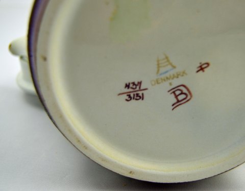 Baca Tepotte nr. 437/3151 fra Aluminia. Tekanden har et minimalt afslag ved tuden. Højde (uden hank): 13 cm. Ø: 12 cm. Pris: 750 kr. Varenr.: 206602