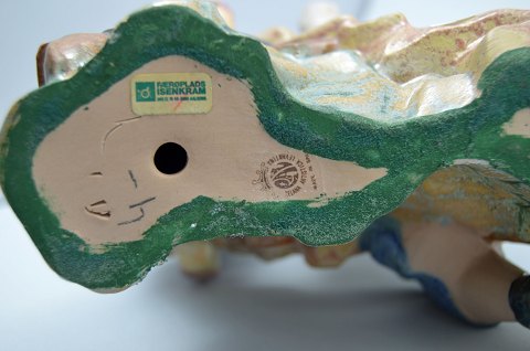 Figur i glaseret keramik med motiv af dreng med pige på vogn