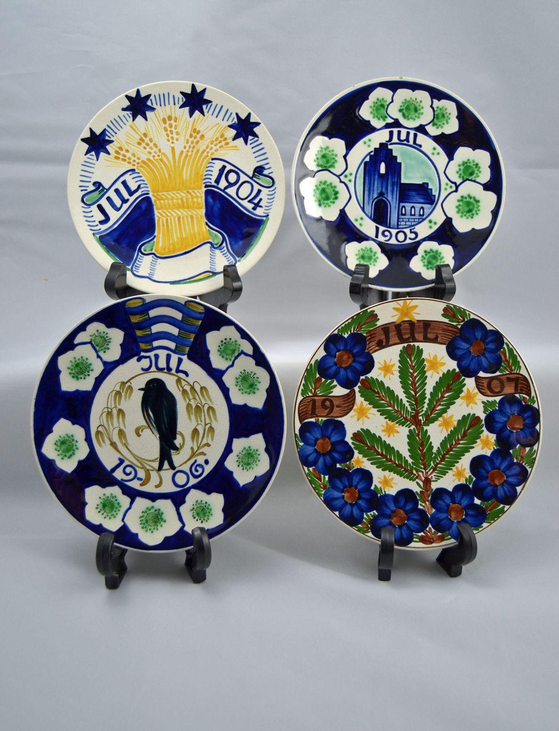Juleplatter fra år 1904, 1905, 1906 og 1907 fra Aluminia.