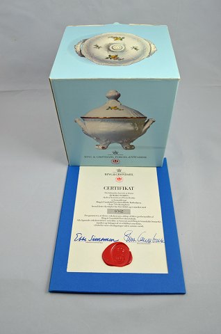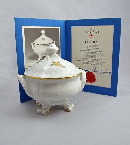 Rokoko terrin designet af Pietro Krohn for B&G. Der er kun produceret 750 eksemplar af denne. B&G Terrinen er i perfekt stand og med den følger certifikat og original kasse. Højde (m/låg): 18 cm. Ø: 14 cm.