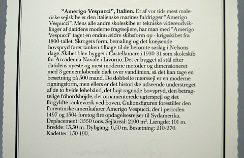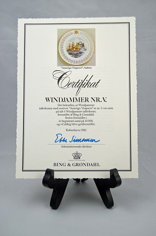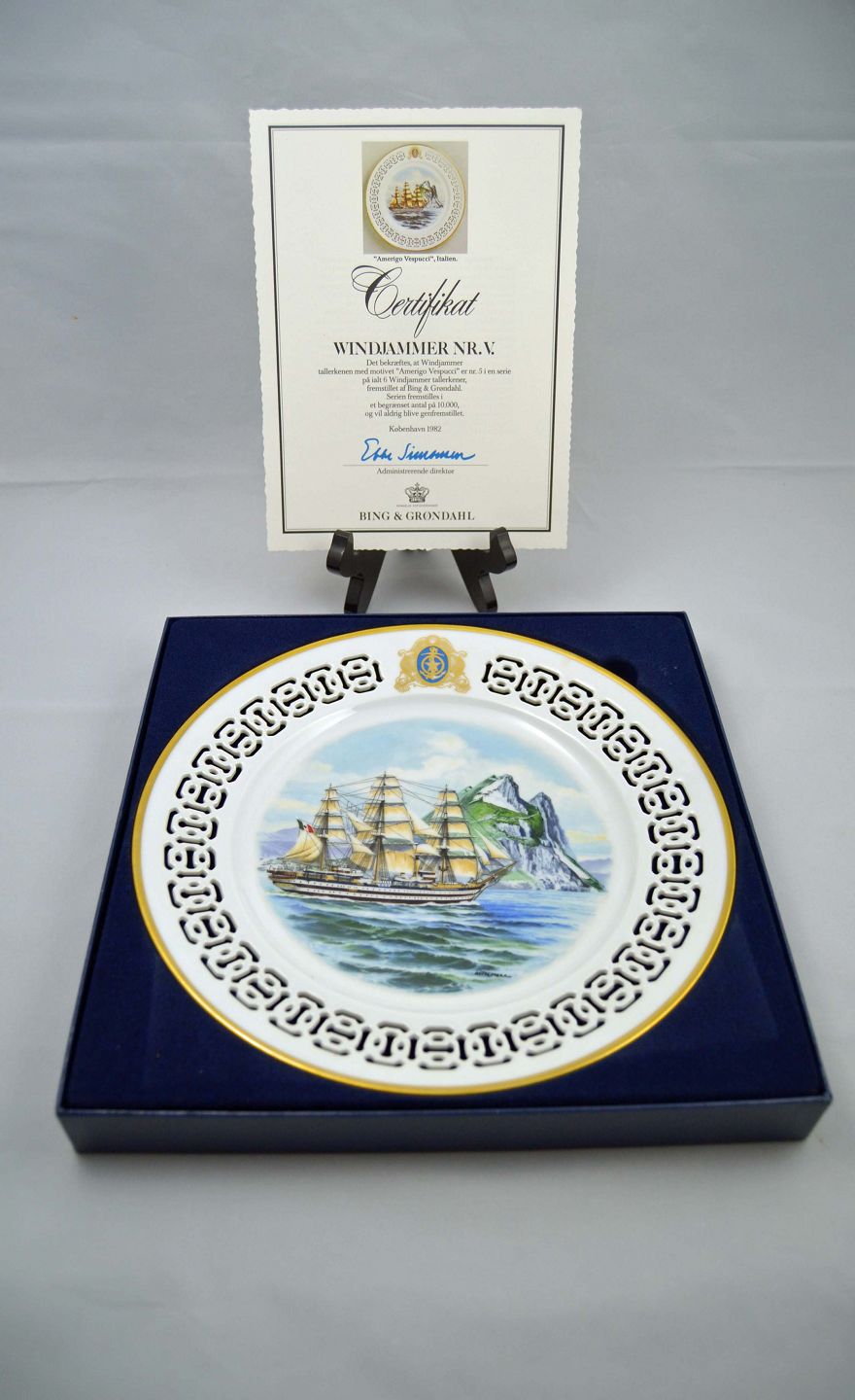 Windjammer seriens nr. 5 er motivet af skibet ‘Amerigo Vespucci' fra Italien. Platten nr. 8870/633. Den har en diameter på 27,5 cm. Platten er i perfekt stand, og den er klargjort til ophæng. Den kommer med certifikat. Kontakt os vedrørende pris.