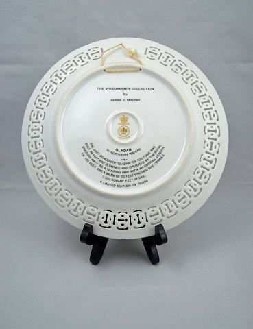 Windjammer seriens nr. 3 er motivet af skibet ‘Gladan’ fra Sverige . Platte nr. 8868/633. Den har en diameter på 27,5 cm. Platten er i perfekt stand, og den er klargjort til ophæng.