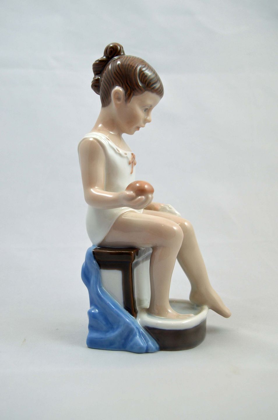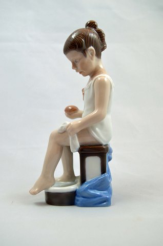 Håndmalet figur (nr. 5) fra Lyngby porcelæn. Pige tager fodbad.