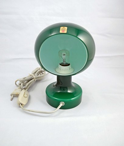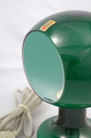 Kuglelampen er udformet i grønt glas med hvidt glas på indersiden.