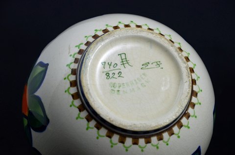 Aluminia vase (de. nr. 740/822). Vasen har en mindre reparation ved topkanten. Hvid blomst og gule frugter, samt grønne blade.
