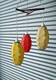 Loftslampe med teak stel og farverige plasskærme. Lampen er i pæn stand.