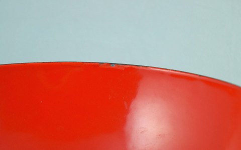 Krenit skål med orange emajle. Skålen er i pæn stand.