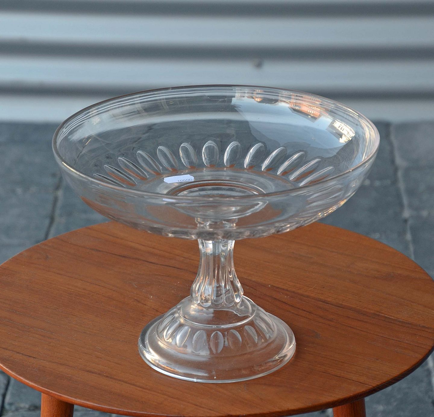 Glasopsats eller kagefad på fod. Den er i meget pæn stand uden skår. H: 19,5 cm. Ø: 26,5 cm.