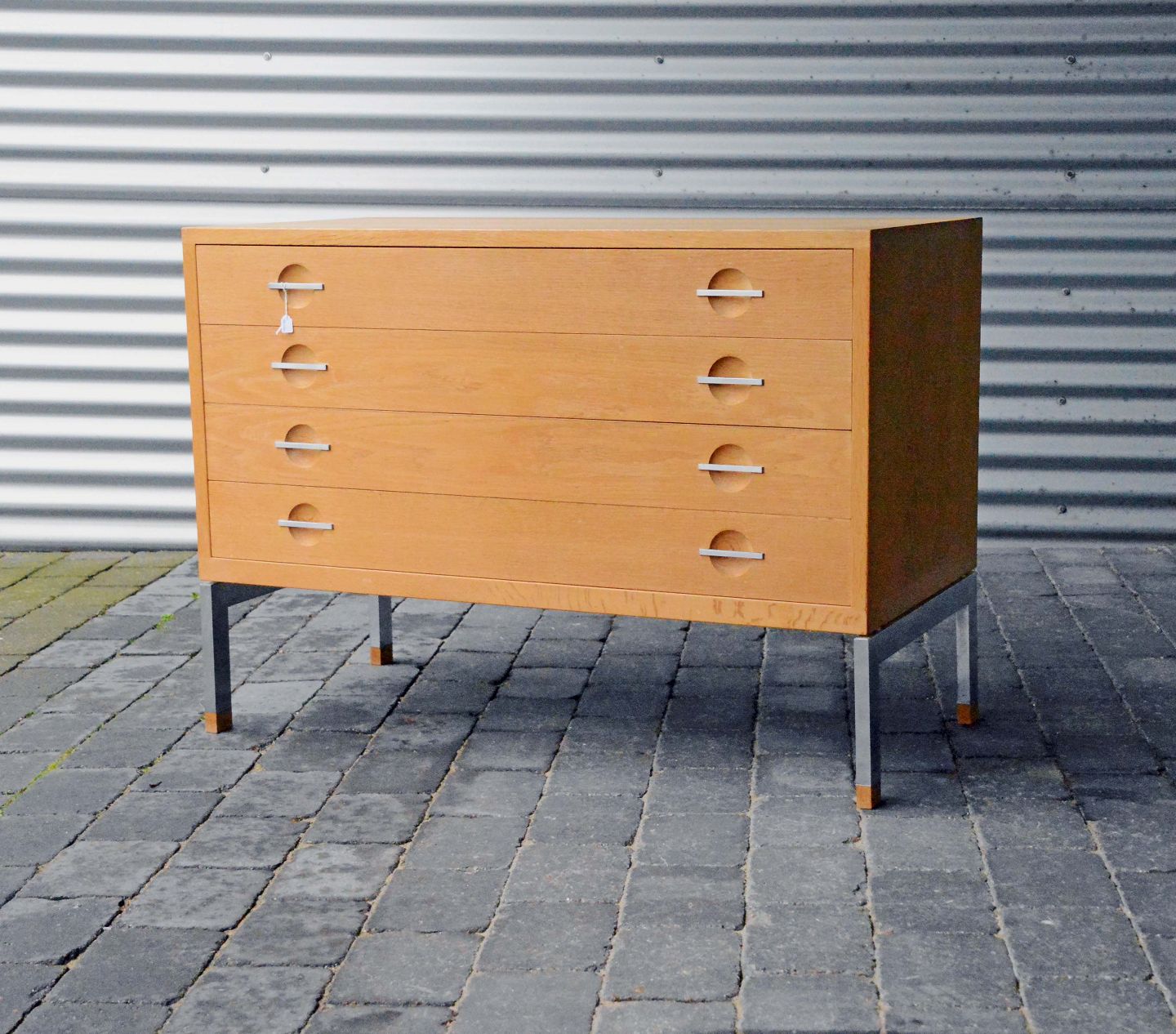 Kommode i eg og stål designet af Hans J. Wegner for Ry møbler. Kommoden er i pæn stand.