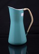 Kande i blågrøn og hvid emalje og med flet af plast fra Jens Harald Quistgaard. Stemplet IHQ. Kanden er i meget pæn stand. H: 20,5 cm. Ø: 11 cm.