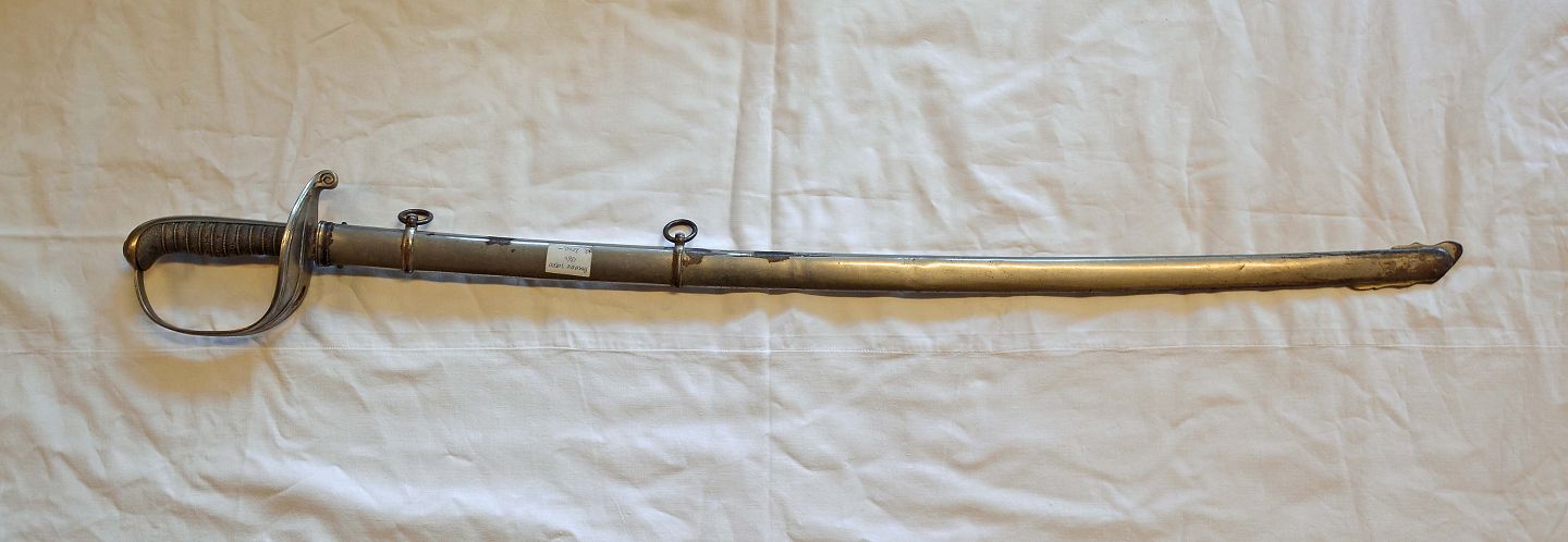 Paradesabel model 1864. Mindre nøk i skaftet og slid efter brug.