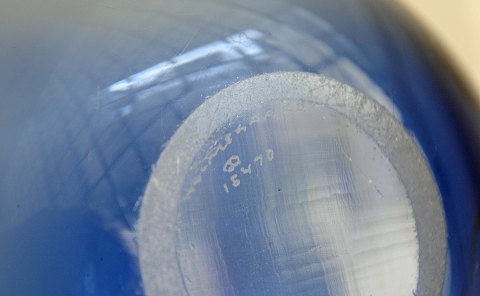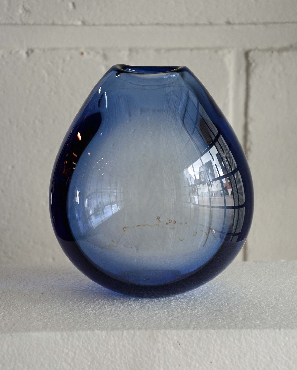 Safirblå dråbevase (nr. 15470) af Per Lütken for Holmegaard. Intakt med brugsspor.