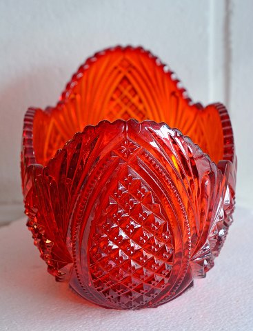 Rubinrød jardinierer skål af presset glas fra Fyns glasværk år 1924.