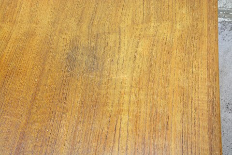 Spisebord i teaktræ med 2 stk. tillægsplader. Enkelte brugsspor. Pæn stand.