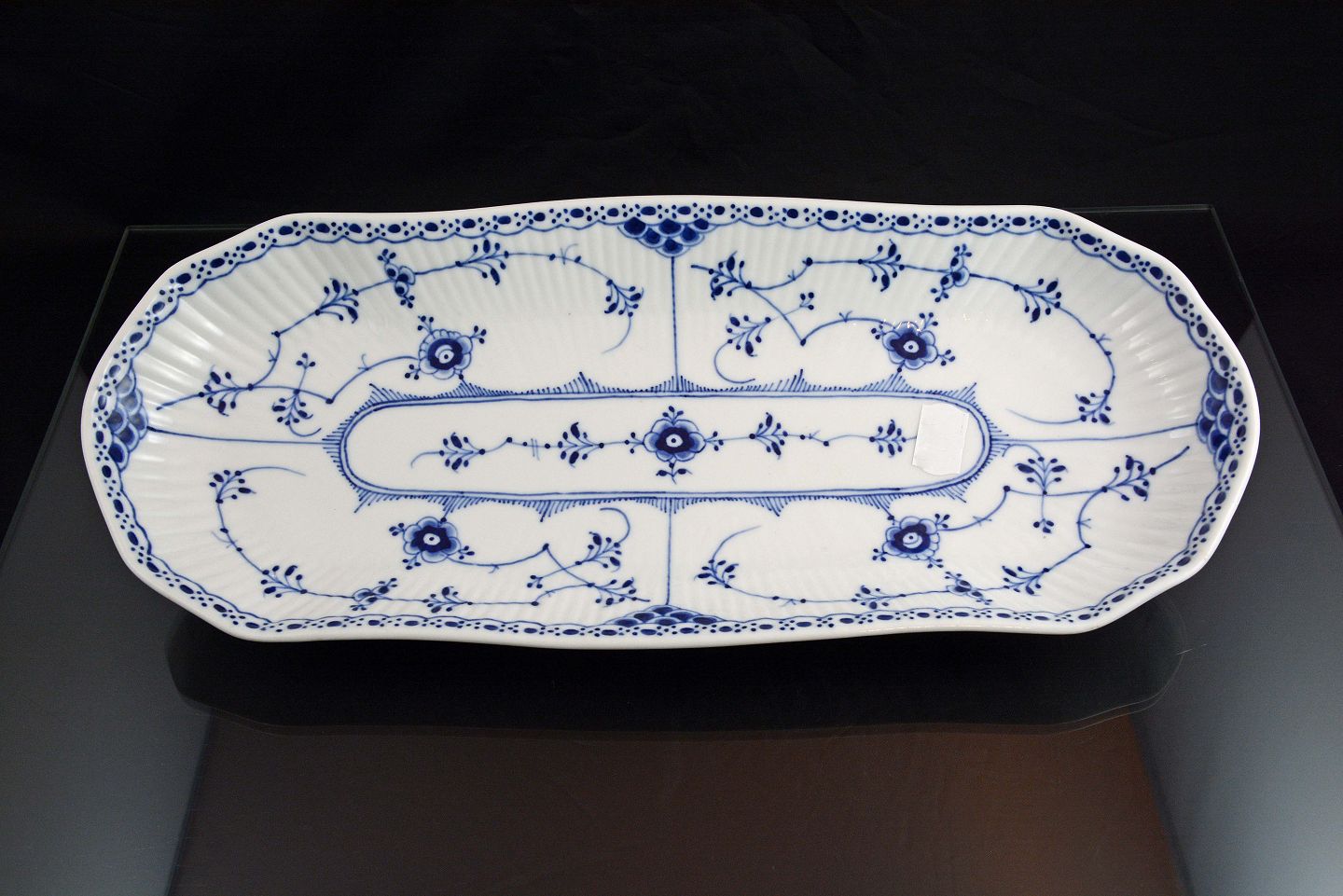 Aflangt fad (nr. 1/714) Kgl. halvblonde musselmalet fra Royal Copenhagen. 1. sort. Intakt.