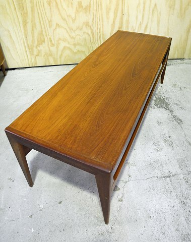 Sofabord i teaktræ med vendbar topplade. Intakt. Meget få brugsspor.