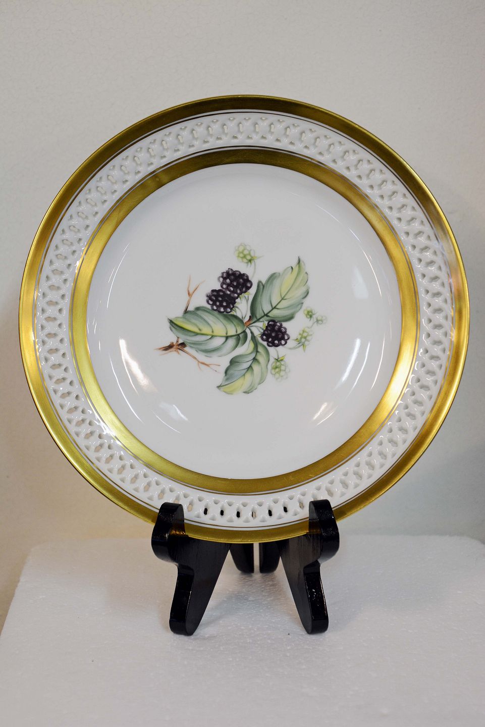 Vægplatte med gyldenkant og motiv af brombær (nr. 26A) fra Bing og Grøndahl. Intakt. 1. sort.