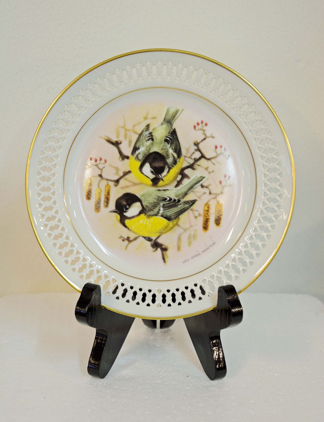 Musvit vægplatte (nr. 11413/616). Motiv nr. 1 i serien ”Danske sangfugle” af Leif Ragn Jensen for Bing og Grøndahl. Intakt. 1. sort.