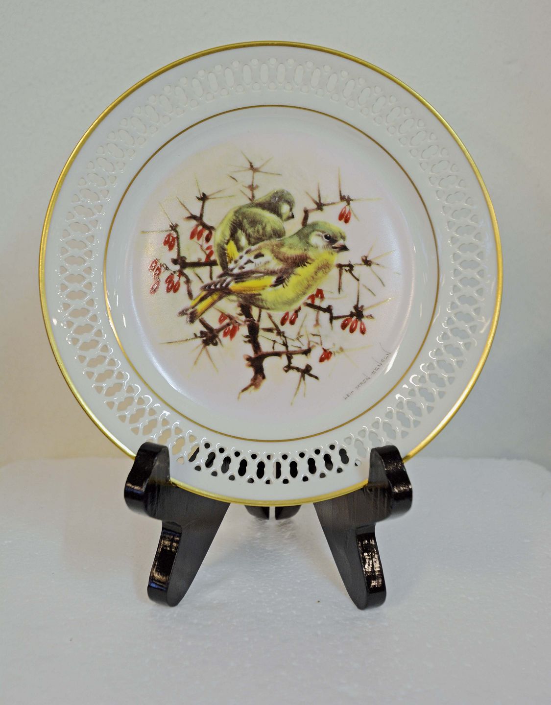 Grønirisk vægplatte (nr. 11415/616). Motiv nr. 2 i serien ”Danske sangfugle” af Leif Ragn Jensen for Bing og Grøndahl. Intakt. 1. sort.