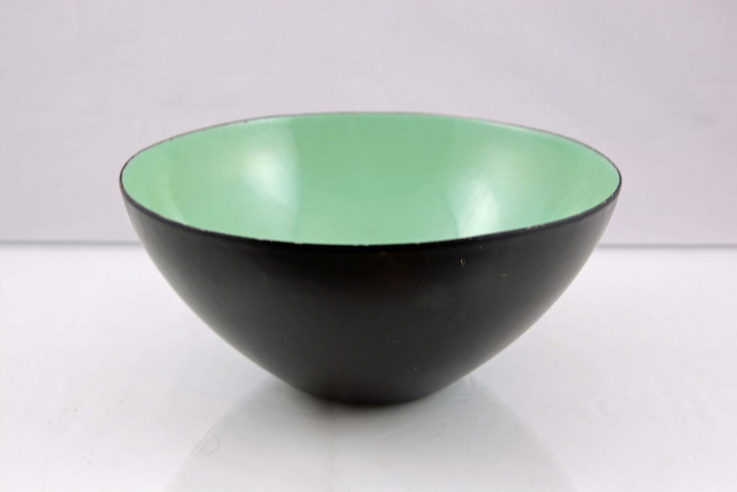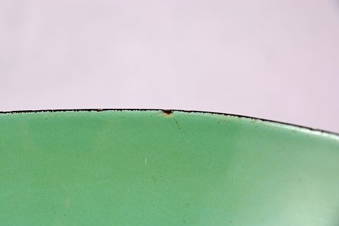 Krenit emaljeskål med mintgrønt emalje. U/stempel. Brugsspor i bunden og mindre nøk i emaljen langs topkanten.