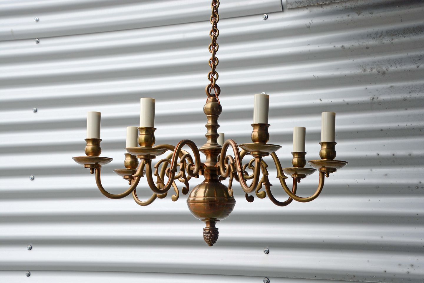 Syvarmet lysekrone i messing.