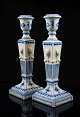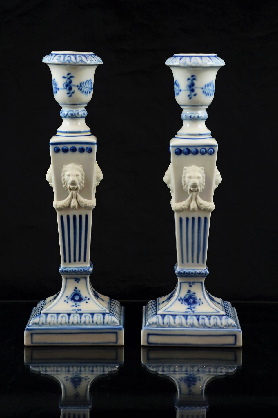 Et par Kgl. musselmalet riflet lysestager med løvehoveder.