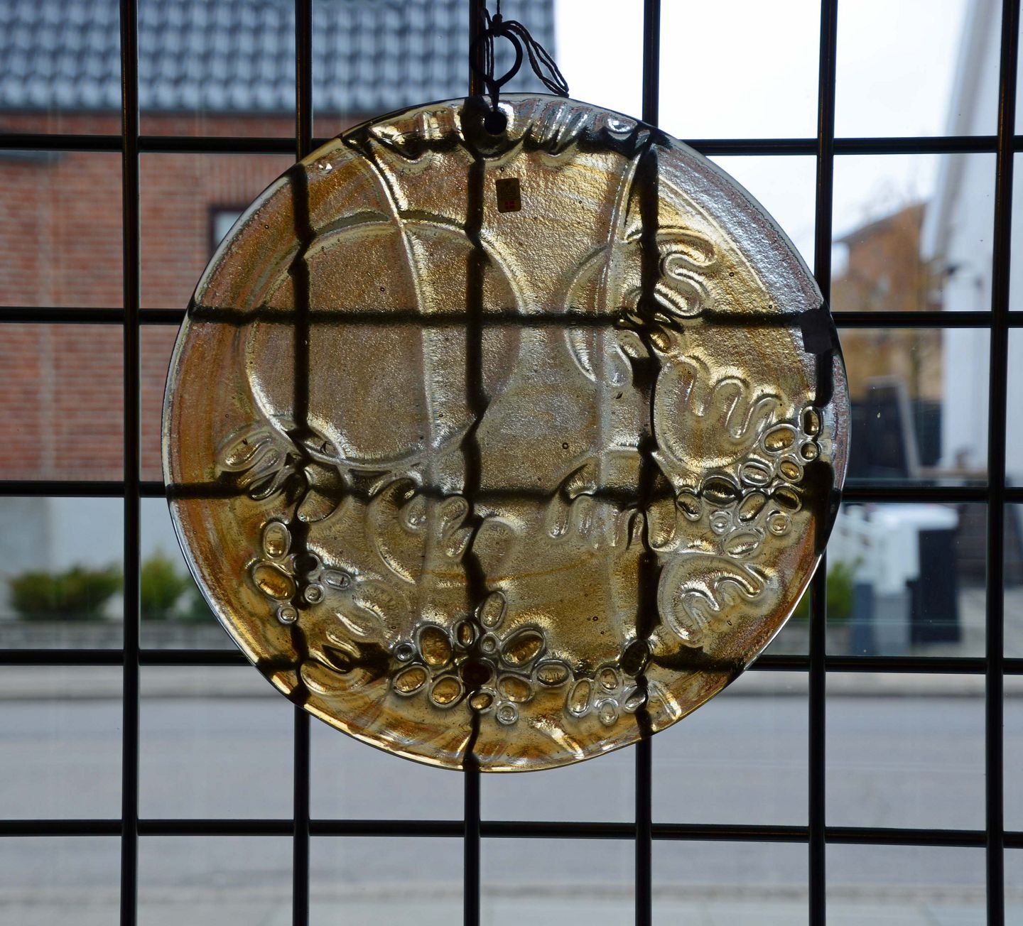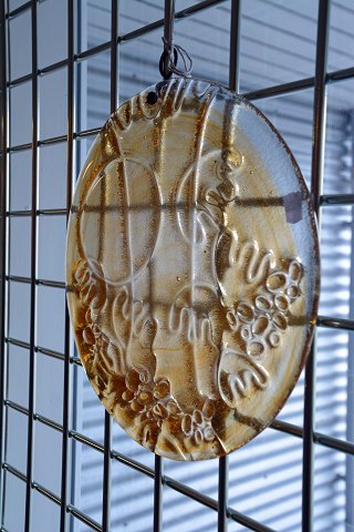 Relief i gult glas fra Holmegaard, Copenhagen. Intakt.