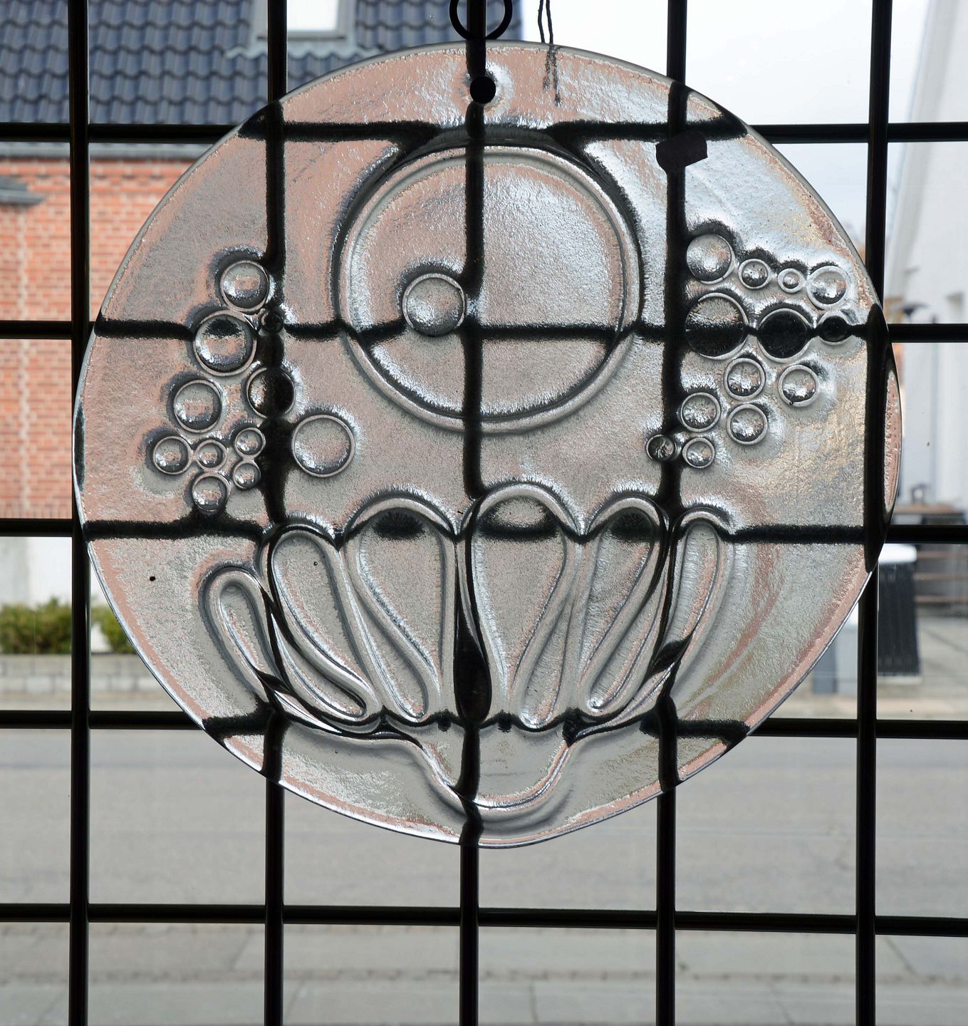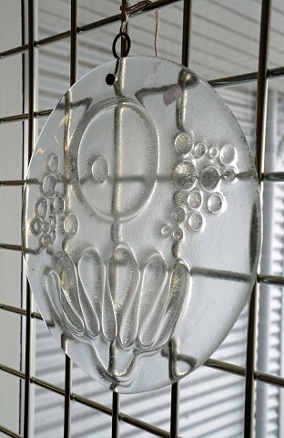 Relief i glas fra Holmegaard. Ophænget er fremstillet i transparent glas.
