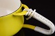 Emalje saucekande designet af Jens Harald Quistgaard. Kanden er stemplet IHQ. Den står med løsrevet plastflet i toppen af hanken. Få brugsspor - ridser i bunden og minimalt afslag et sted i emaljen.