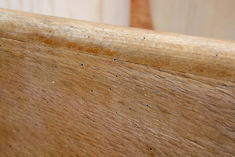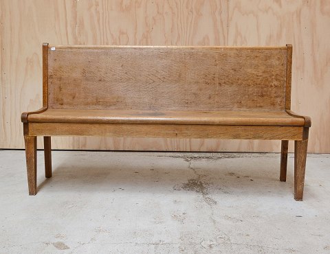 Bænk i eg fra ca. 1920érne. Fremstår med aldersrelaterede brugsspor.