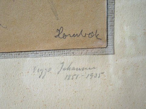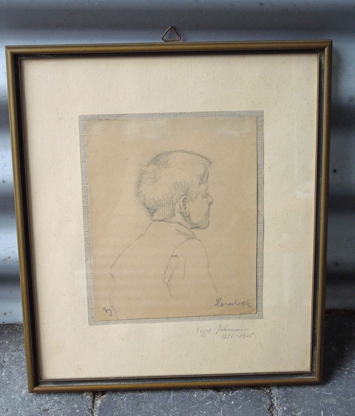 Indrammet portrættegning med blyant af Viggo Johansen (1851-1955). Signeret "Hornbæk". Fremstår med brugsspor på rammen.