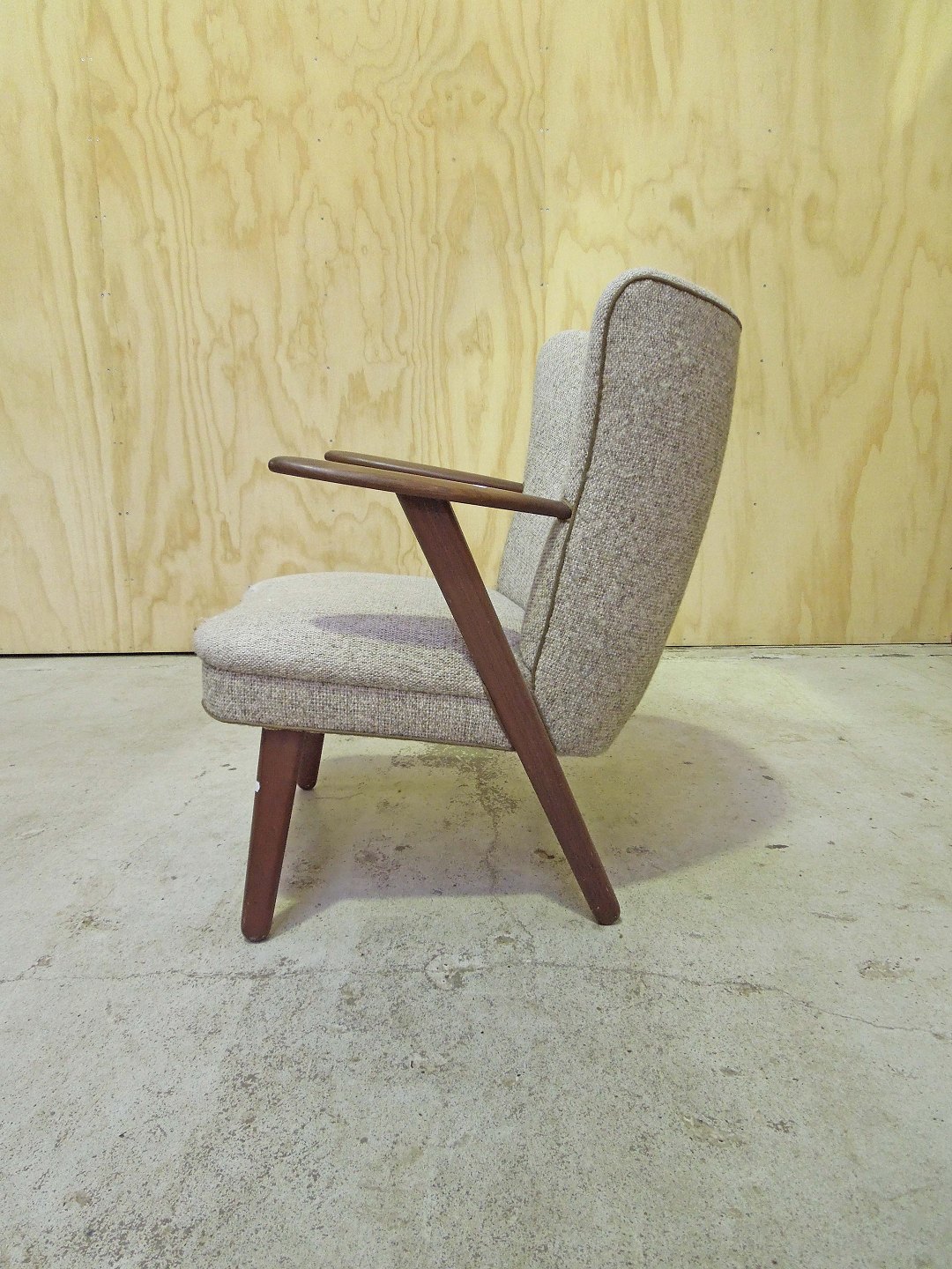 Polstret lænestol i teaktræ, arkiv foto, vi har andre med anden polstring.