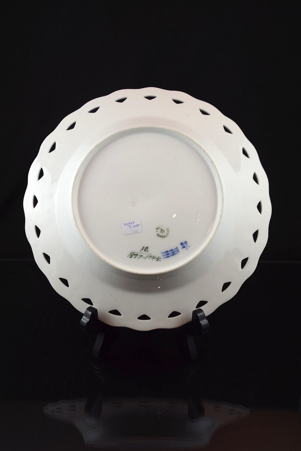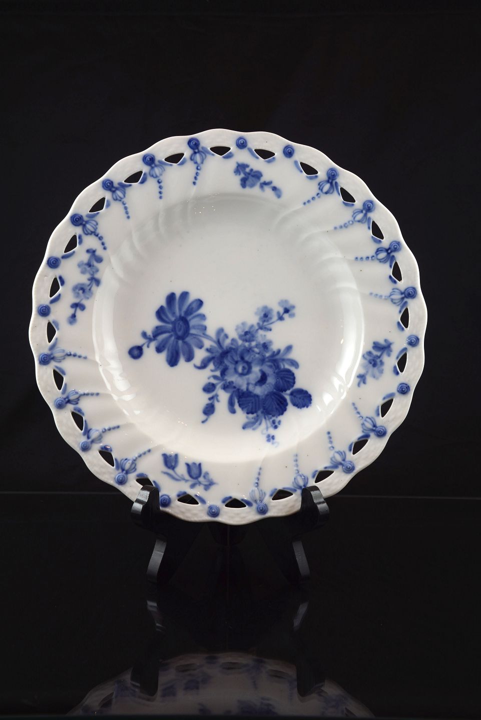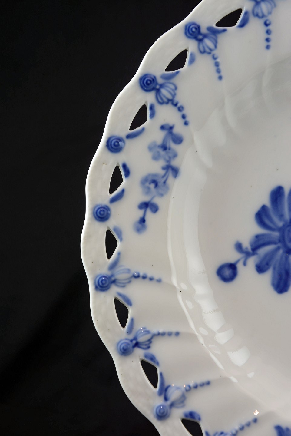 Kongelig Blå blomst svejfet tallerken med blonde (nr. 10/1577-1745) fra Royal Copenhagen, 2. sort.