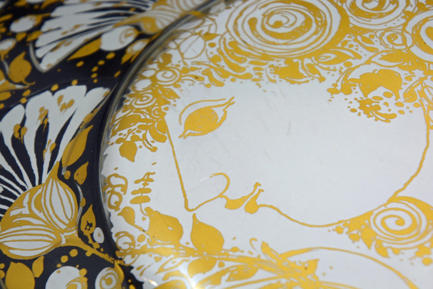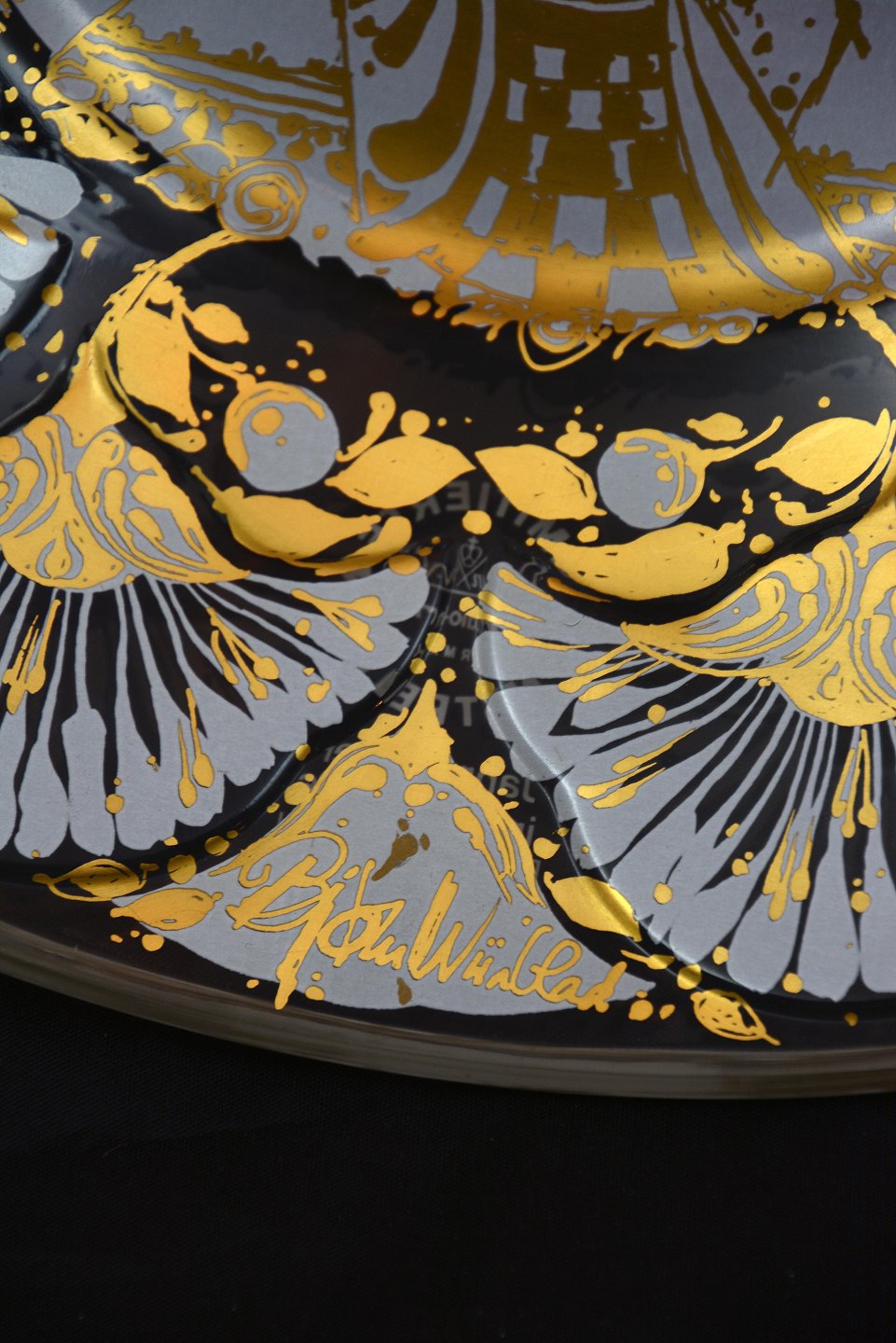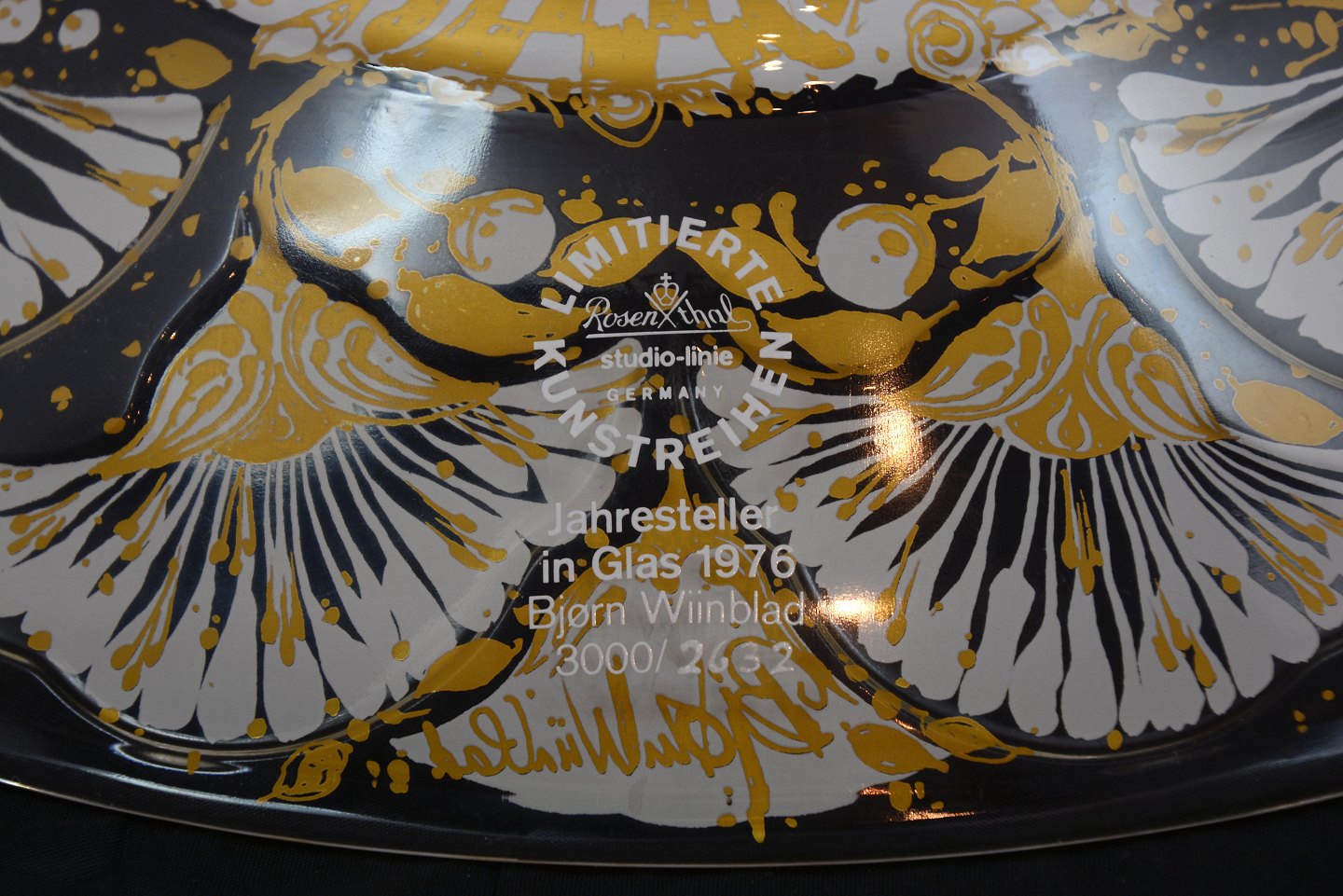 Stort glasfad (nr. 3000/2632) af Bjørn Wiinblad for Rosenthal Studio-linie, Germany. Mærket "Limitierte Kunstreihen. Jahresteller in glas 1976."