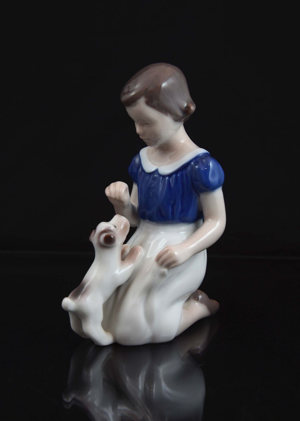 Pige med hundehvalp (nr.2316) af Vita Thymann for Bing og Grøndahl. intakt. 1. sort. H. 13 cm.