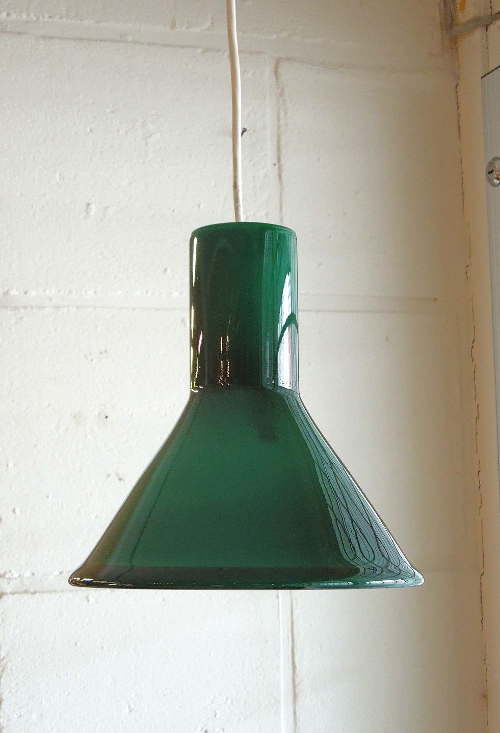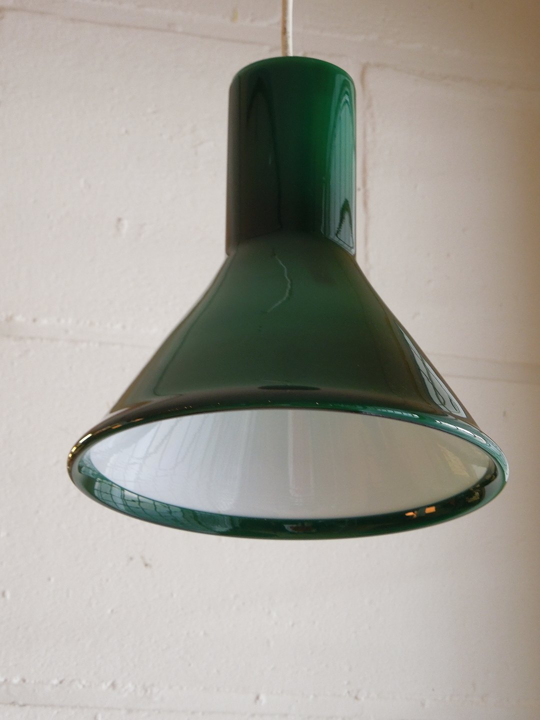 Pendlen er udformet i hvidt glas under grønt overfangsglas.