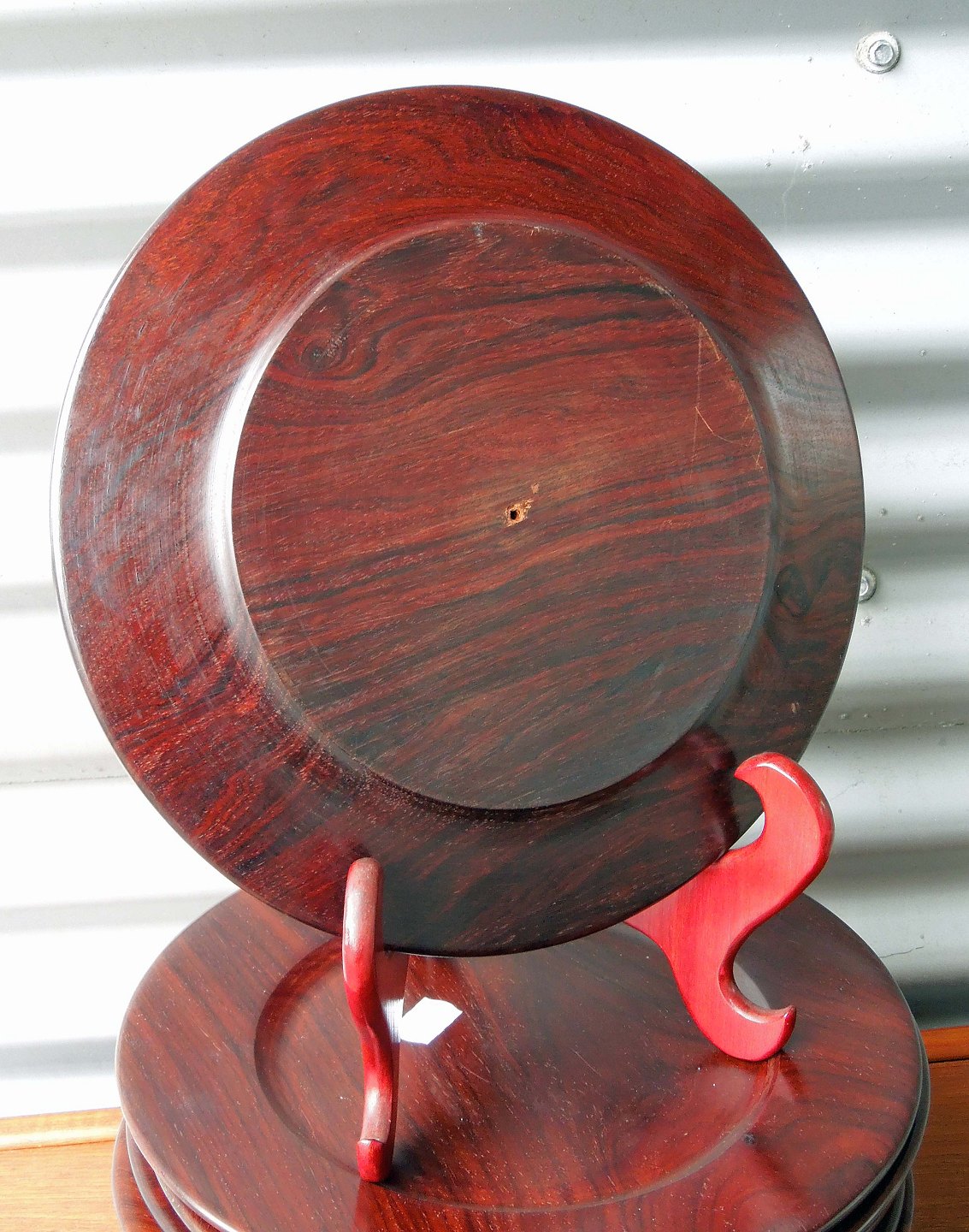 Dæktallerkener i lakeret palisander. Fremstår med overfladiske brugsspor - mindre ridser efter brug.