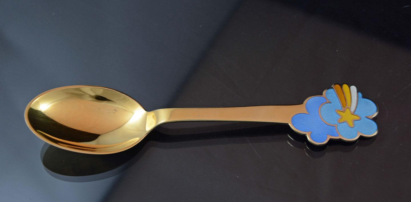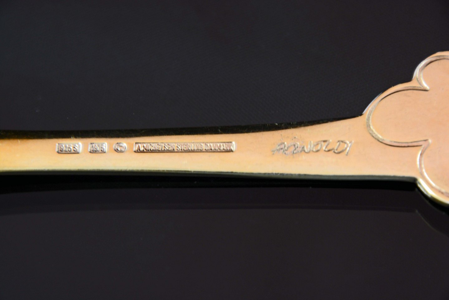 Længde 16 cm. i forgyldt sterling sølv. arkivfoto