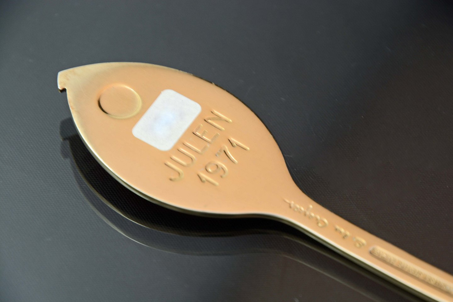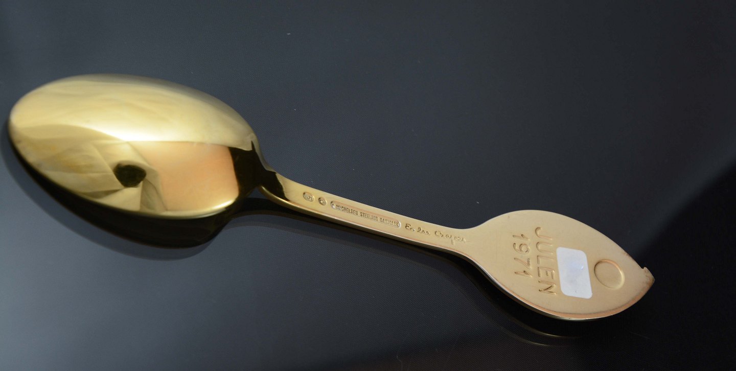 Længde 16 cm. i forgyldt sterling sølv, Arkivfoto