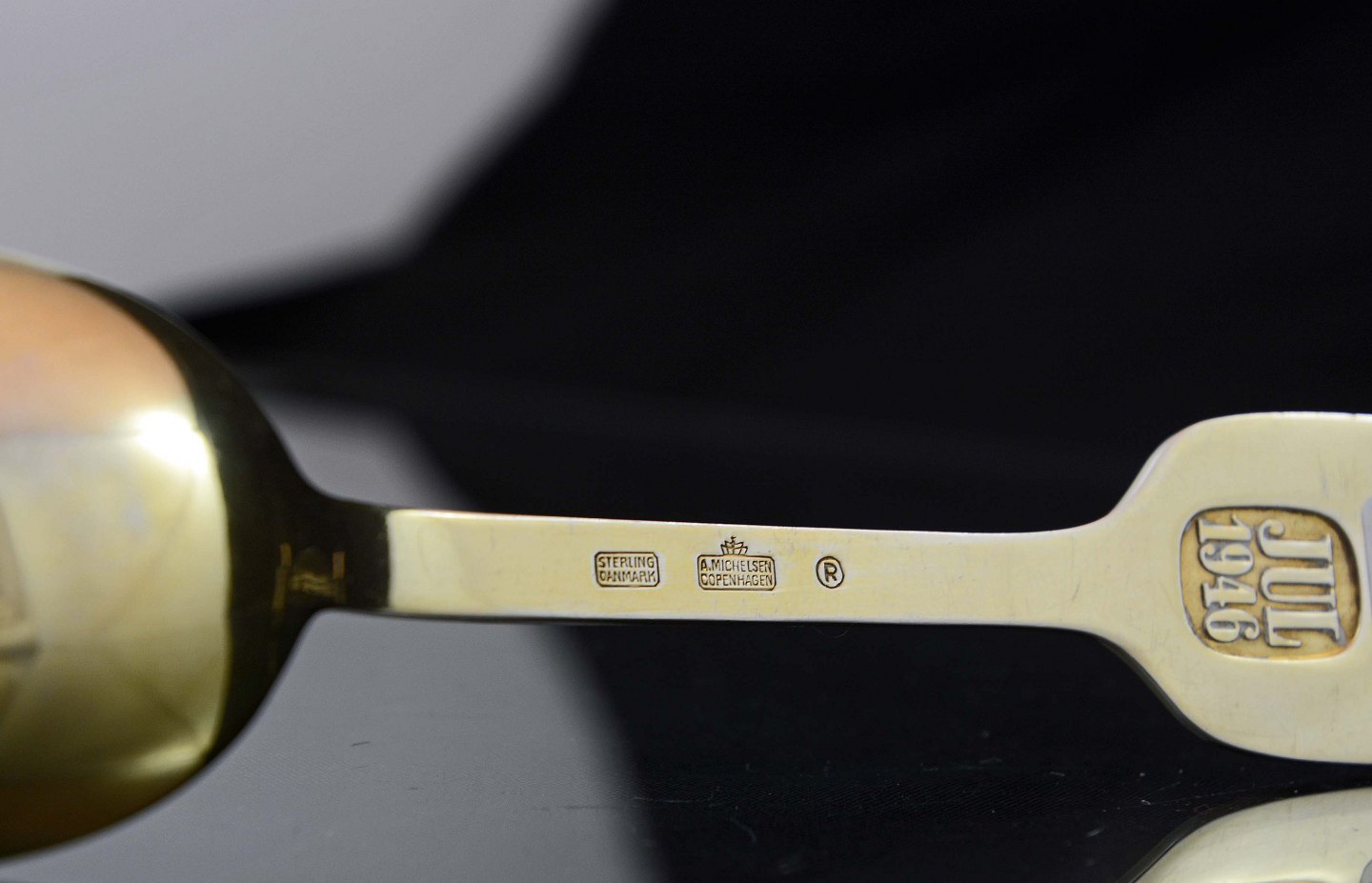 L. 16 cm. i forgyldt sterling sølv.