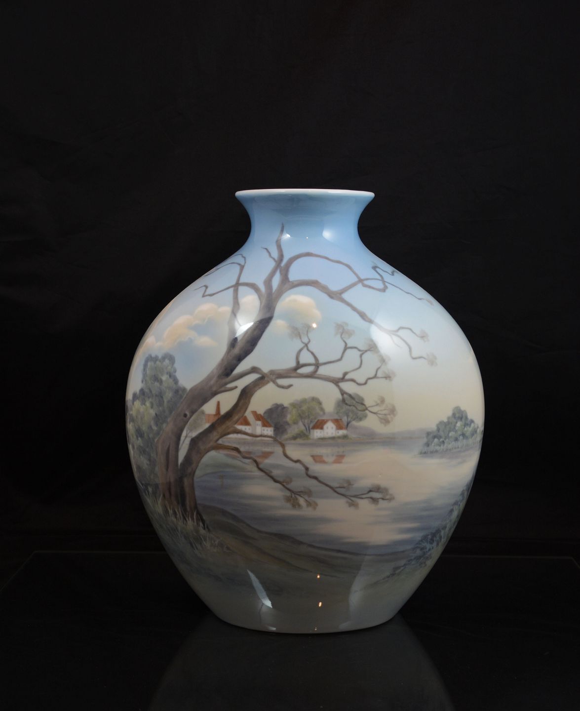 Oval vase nr. 740-55507 fra Bing og Grøndahl. Natur motiv.