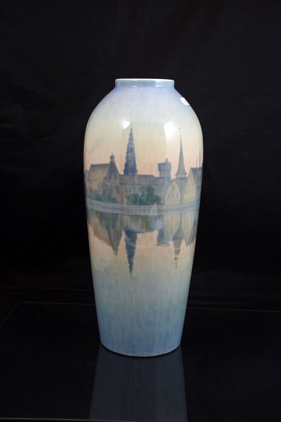 Vase med by og havne motiv fra Bing og Grøndahl.