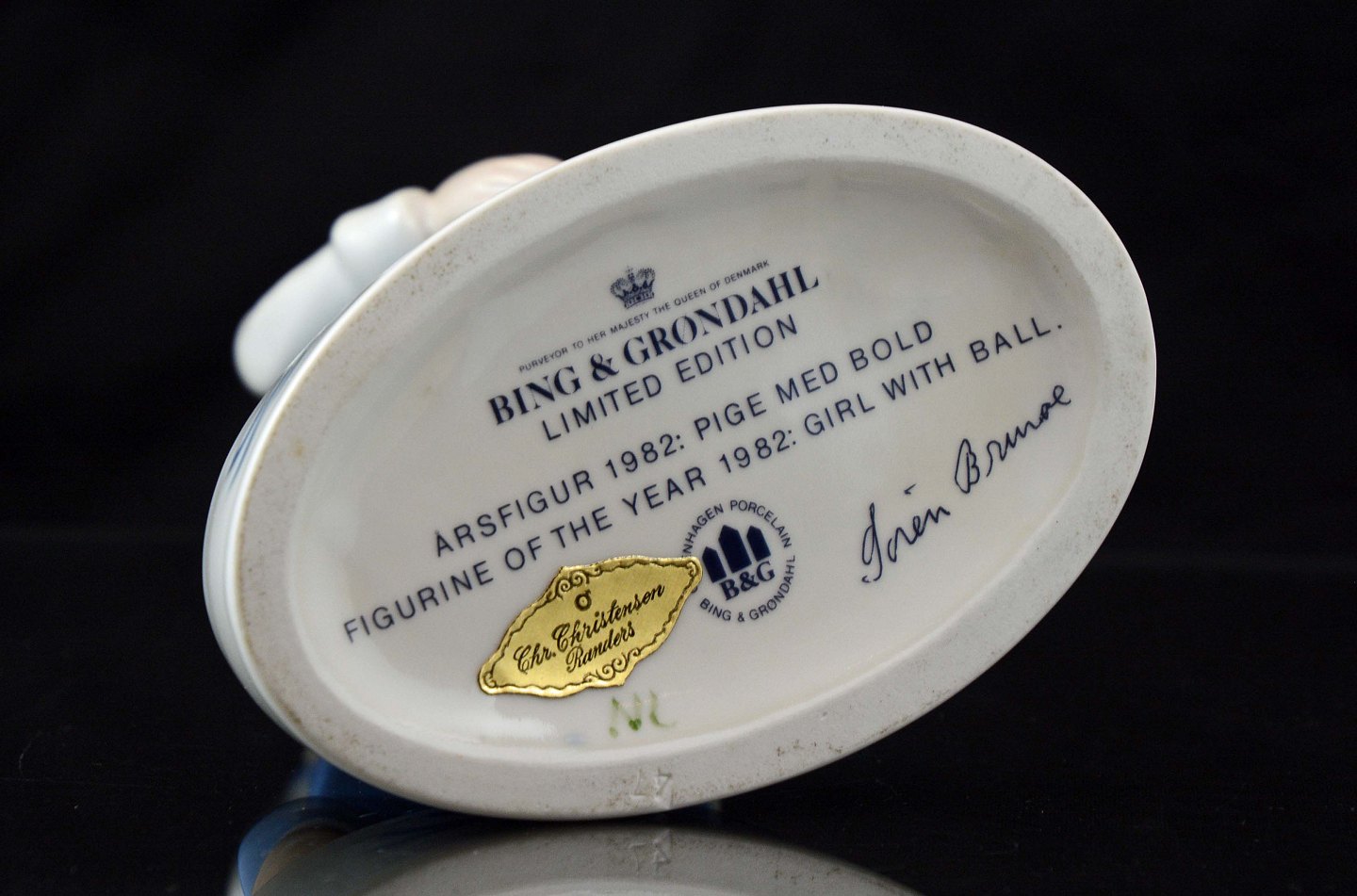 Limited edition års figur 1982, Pige med bold designet af Søren Brunoe for B&G. Intakt. 1. sort. H. 22 cm.