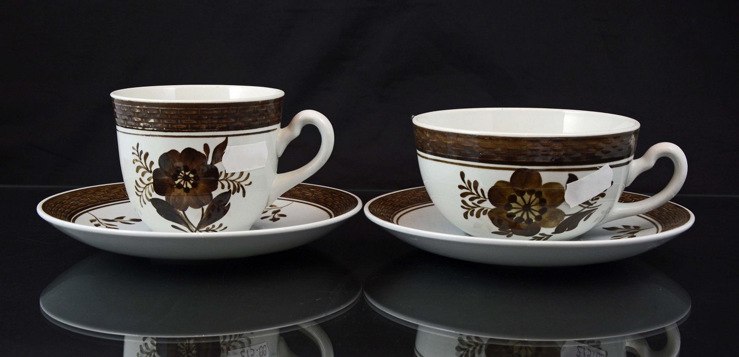 Brun tranquebar stel fra Aluminia/RC fajance fra år 1919