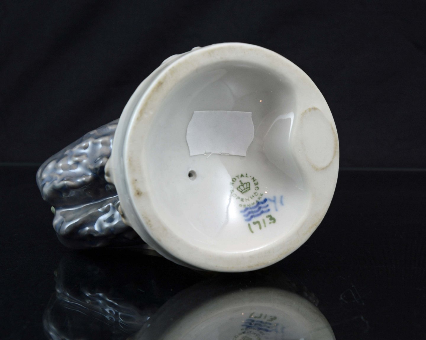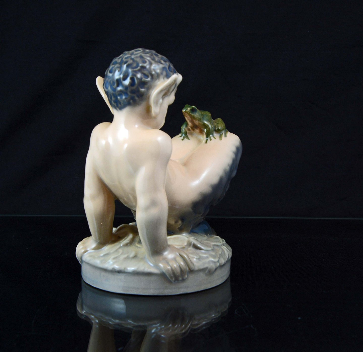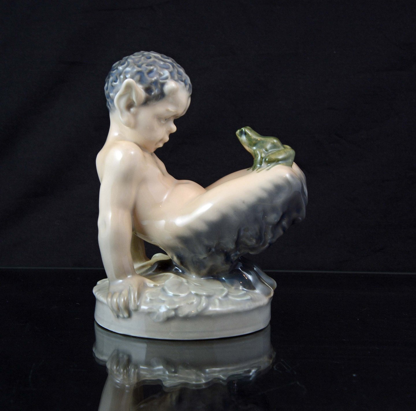 Kgl. porcelænsfigur 'Favn med frø' (nr. 1713) designet af Chr. Thomsen for Royal Copenhagen. Grøn i fod.