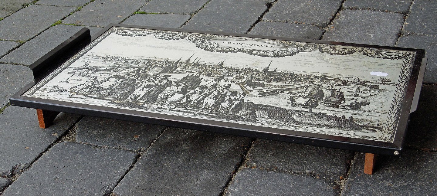 Sofabord i palisander med kobberplade.