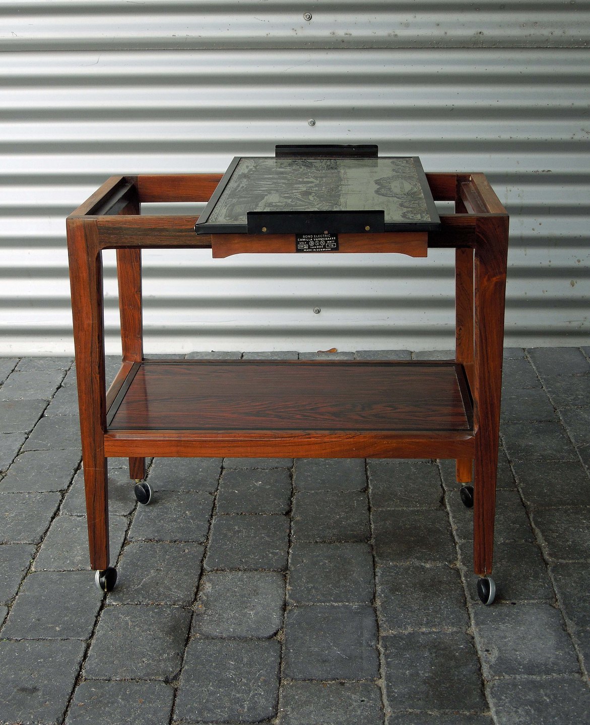 Serveringsvogn i palisander og med aftagelig Camilla varmebakke inkl. ledning.