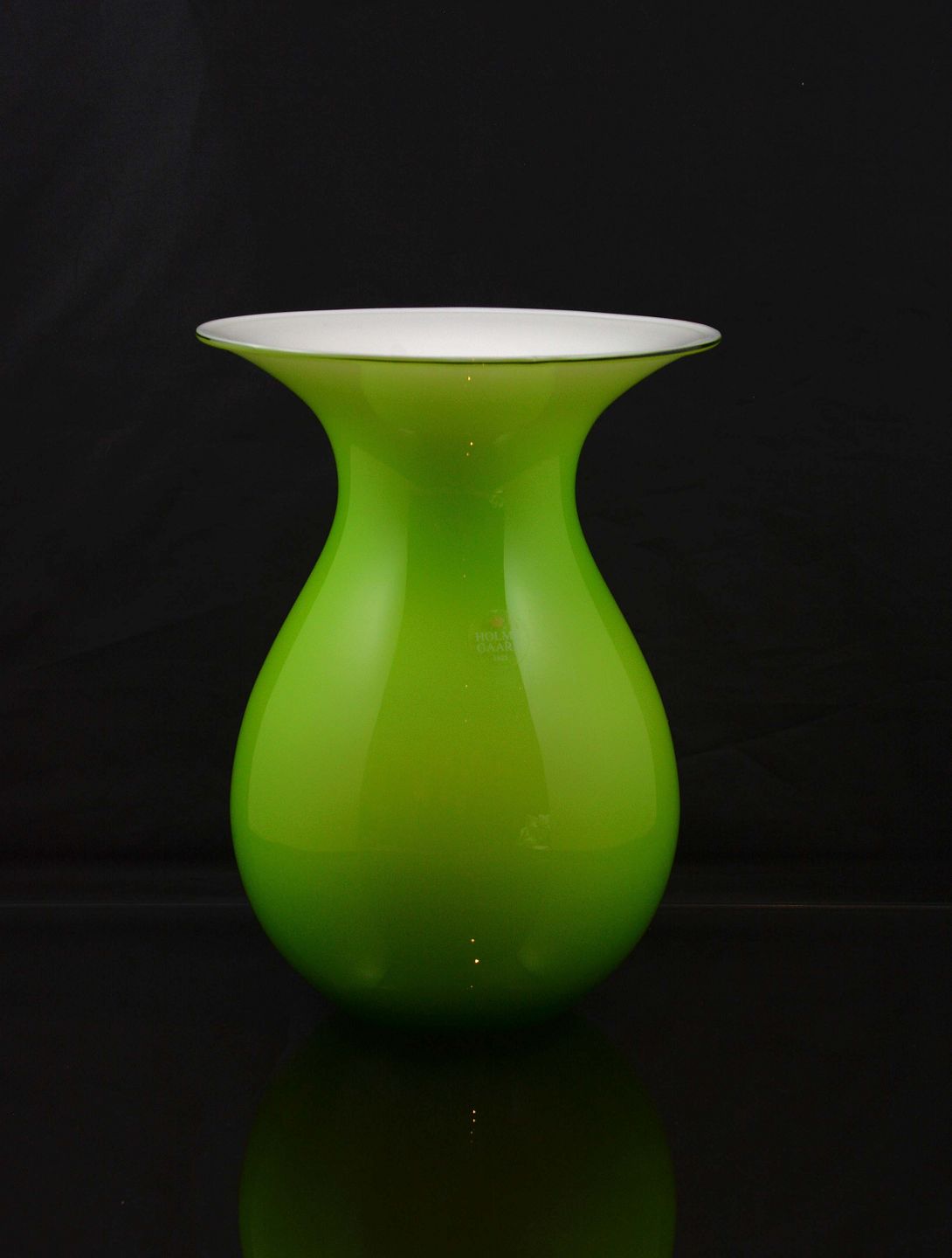 Holmegård vase, opalhvid med grønt omfangsglas. Solgt