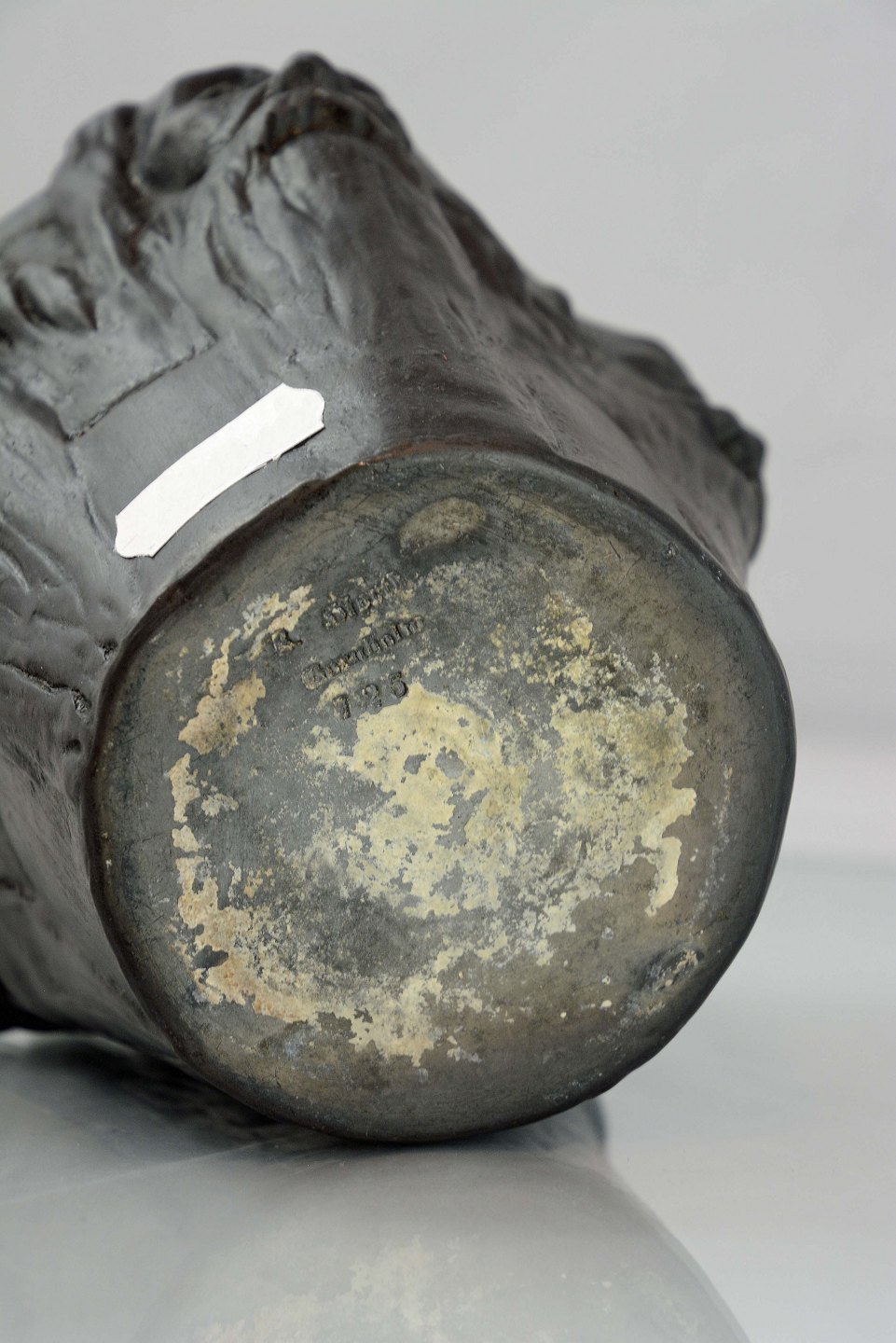 Sort urtepotteskjuler med ansigtsmotiver. vase